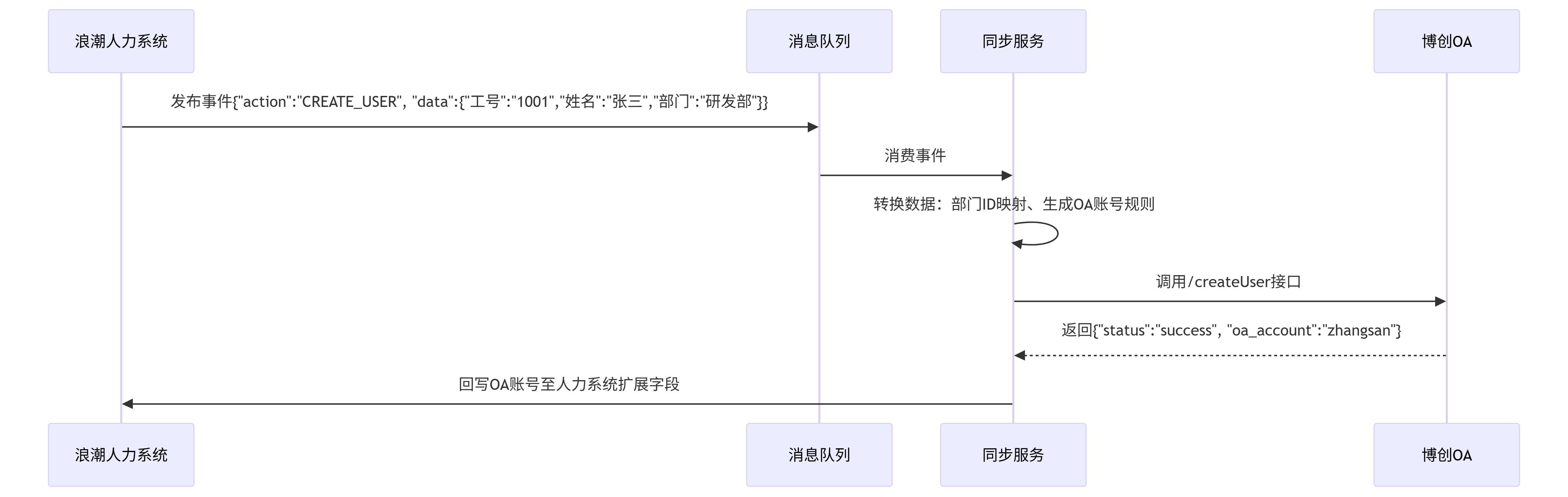 | 岗位信息 | 人力→OA | 岗位编码、名称、职级、所属部门 | 岗位创建/撤销 |